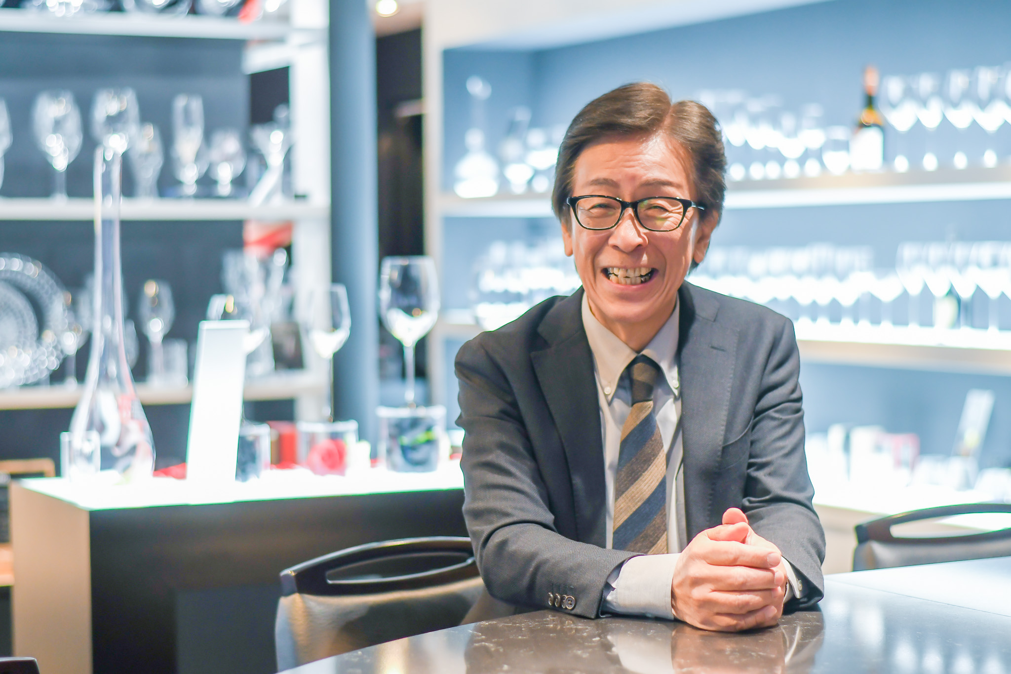 その日本での歩みを、誰よりも長く、そして深く支え続けてきたのが、RSN Japan 株式会社の内海 健さん。穏やかな語り口と、スーツをきちんと着こなす凛とした佇まい。その奥には、RIEDELへの揺るぎない愛情と、日本市場においてブランドの価値を伝え、育ててきた誇りがにじみます。